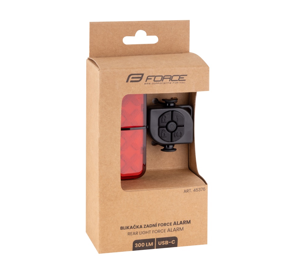 Το πίσω φως FORCE ALARM 300 LM είναι ένα έξυπνο φως ποδηλάτου με αισθητήρα φρεναρίσματος και συναγερμό. Ενισχύει την ορατότητά σας και αυξάνει την ασφάλεια, χάρη στον ενσωματωμένο αισθητήρα φρένου, που φωτίζει αυτόματα όταν επιβραδύνετε. Ο ενσωματωμένος συναγερμός κίνησης προστατεύει το ποδήλατό σας από πιθανή κλοπή, ενώ η δυνατή κόρνα εξασφαλίζει ότι θα σας προσέξουν οι γύρω σας. Με φόρτιση μέσω USB, πέντε λειτουργίες φωτισμού και εύκολη τοποθέτηση, είναι ο ιδανικός σύντροφος για κάθε διαδρομή!