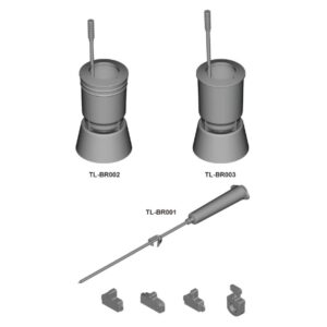 Εκτός από τη σύριγγα TL-BR001, το σετ περιλαμβάνει τις δύο χοάνες εξαέρωσης TL-BR002 και TL-BR003, καθεμία με πώμα λαδιού και βάση, καθώς και 4 διαφορετικούς αποστάτες για τις πιο κοινές δαγκάνες Shimano.