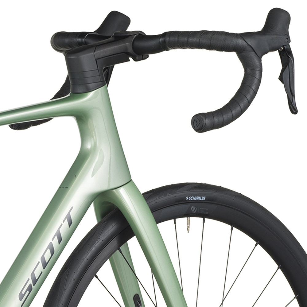 Η Scott κατασκεύασε το πλαίσιο από HMF carbon και αύξησε την κάθετη συμμόρφωση κατά 25% σε σχέση με καθαρά αγωνιστικά μοντέλα. Έτσι απορροφά καλύτερα τους κραδασμούς και προσφέρει πιο ομαλή κύλιση. Παράλληλα διατηρεί υψηλή ακαμψία στο πεταλάρισμα ώστε να μην χάνεις απόδοση.