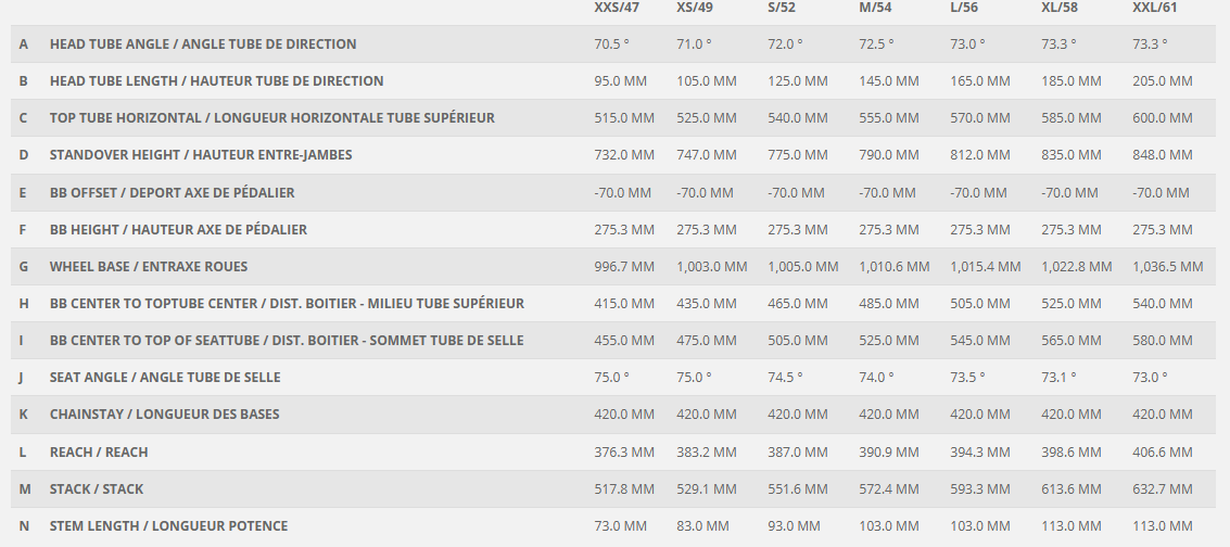 Endurance Γεωμετρία με Tall Stack και Short Reach