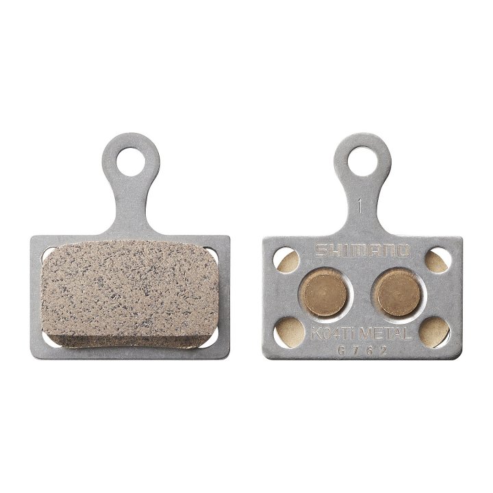 Τα Shimano G04TI είναι υψηλής ποιότητας μεταλλικά τακάκια με τιτανιούχα πλάκα στήριξης (Titanium backplate), ειδικά σχεδιασμένα για δισκόφρενα 2 εμβόλων των σειρών XTR, XT, SLX και Alfine.